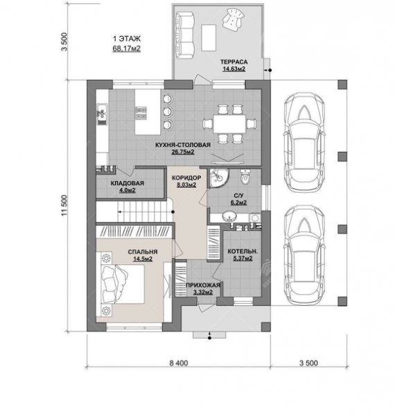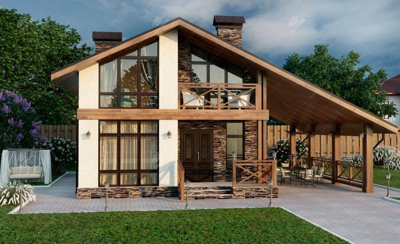 Дом в стиле "Шале" с навесом на два автомобиля.